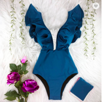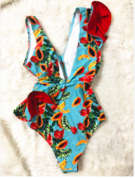 #SW479 Ruffle One Piece Deep-V Bathing Suits$60.00