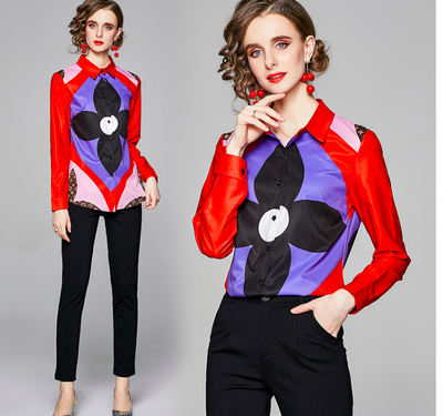 #WC888 Blouse Tops Long Sleeve Vintage Floral Print Button Shirt$79.00
