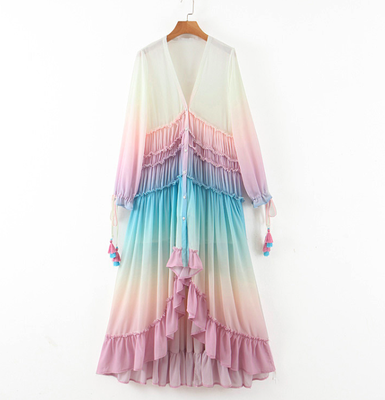 #SW209 bohemia tie dye Sexy deep-v neck Long Sleeve gradient Print Dresses for women beach maxi long$90.00