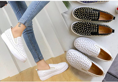 #SH987 Rivet decorated flat walking casual shoes Loafers$100.00